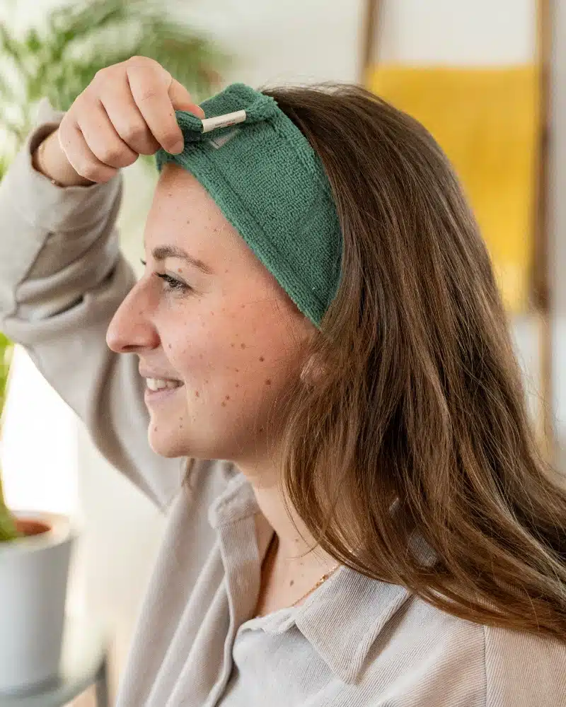 Le système de fermeture par scratch vous permet de l’ajuster à votre convenance pour un port agréable. Parfait pour toutes vos routines beauté, il devient vite un allié indispensable pour assurer tranquillité, que vous appliquiez un masque ou procédiez à un nettoyage approfondi.