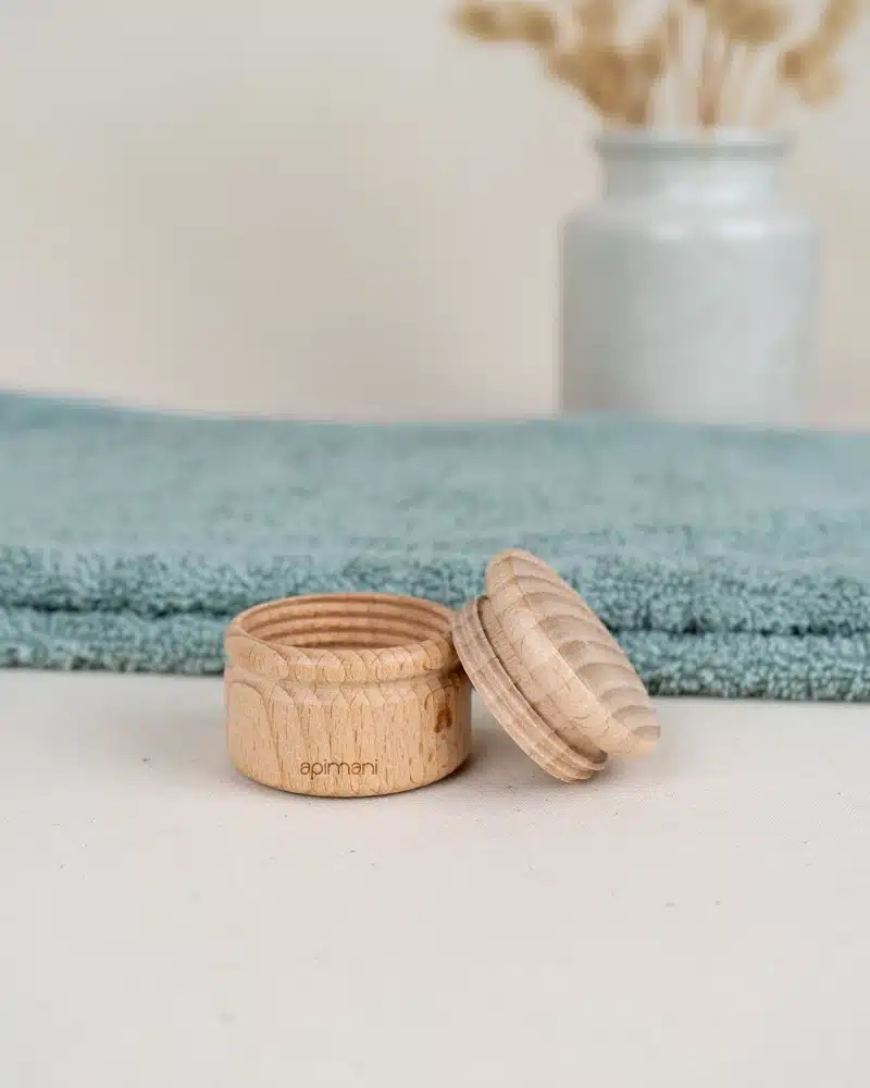 Cette petite boîte ronde est fabriquée dans le Jura à partir de bois de hêtre récolté dans des forêts gérées de manière durable. Le hêtre est un arbre commun dans la région du Jura, reconnu pour sa robustesse et sa résistance.